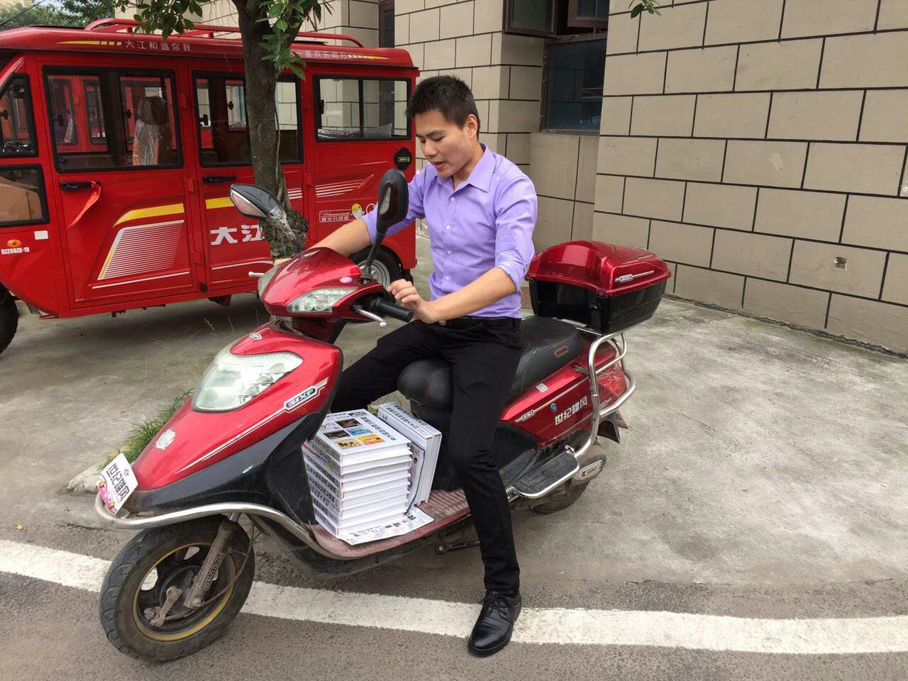 一台摩托,三个人,我们去走访每个采购商的商户发行我们的《供应链大全》书刊。让我们的书刊,让我们的信息传送到每个有需求的采购商的手中。